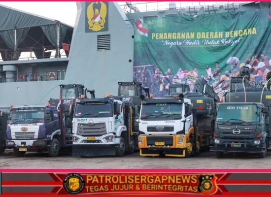 PATROLISERGAPNEWS.COM – BELAWAN – Kapal ADRI LIII yang mengangkut Alat Material Zeni (Almatzi) bantuan dari Kepala Staf Angkatan Darat (Kasad) Jenderal TNI Maruli Simanjuntak, M.Sc., tiba di Dermaga 202 Ujung Baru, Pelabuhan Belawan, Sumatra Utara, Minggu (11/1/2026).