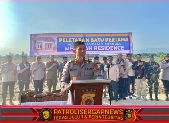 PATROLISERGAPNEWS.COM – Banda Aceh – Kapolda Aceh, Irjen Pol. Marzuki Ali Basyah, resmi memulai pembangunan Perumahan Meutuah Residen bagi personel Polda Aceh pada Minggu (11/1/2026). Bertempat di Desa Deah Raya, Kecamatan Syiah Kuala, Banda Aceh, proyek ini ditegaskan bukan sekadar pembangunan fisik, melainkan implementasi nilai-nilai Maqashid Syariah.