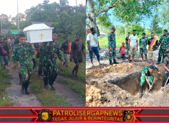 PATROLISERGAPNEWS.COM – WONGGI, PAPUA – Wujud kepedulian dan kedekatan dengan masyarakat kembali ditunjukkan oleh personel Satgas Yonif 123/Rajawali Pos Wonggi. Mereka turut membantu proses pemakaman salah satu warga di Kampung Wonggi an.almarhum bapak Kalit, Distrik Passue, sebagai bentuk empati dan solidaritas terhadap masyarakat setempat. (22/4/2026).